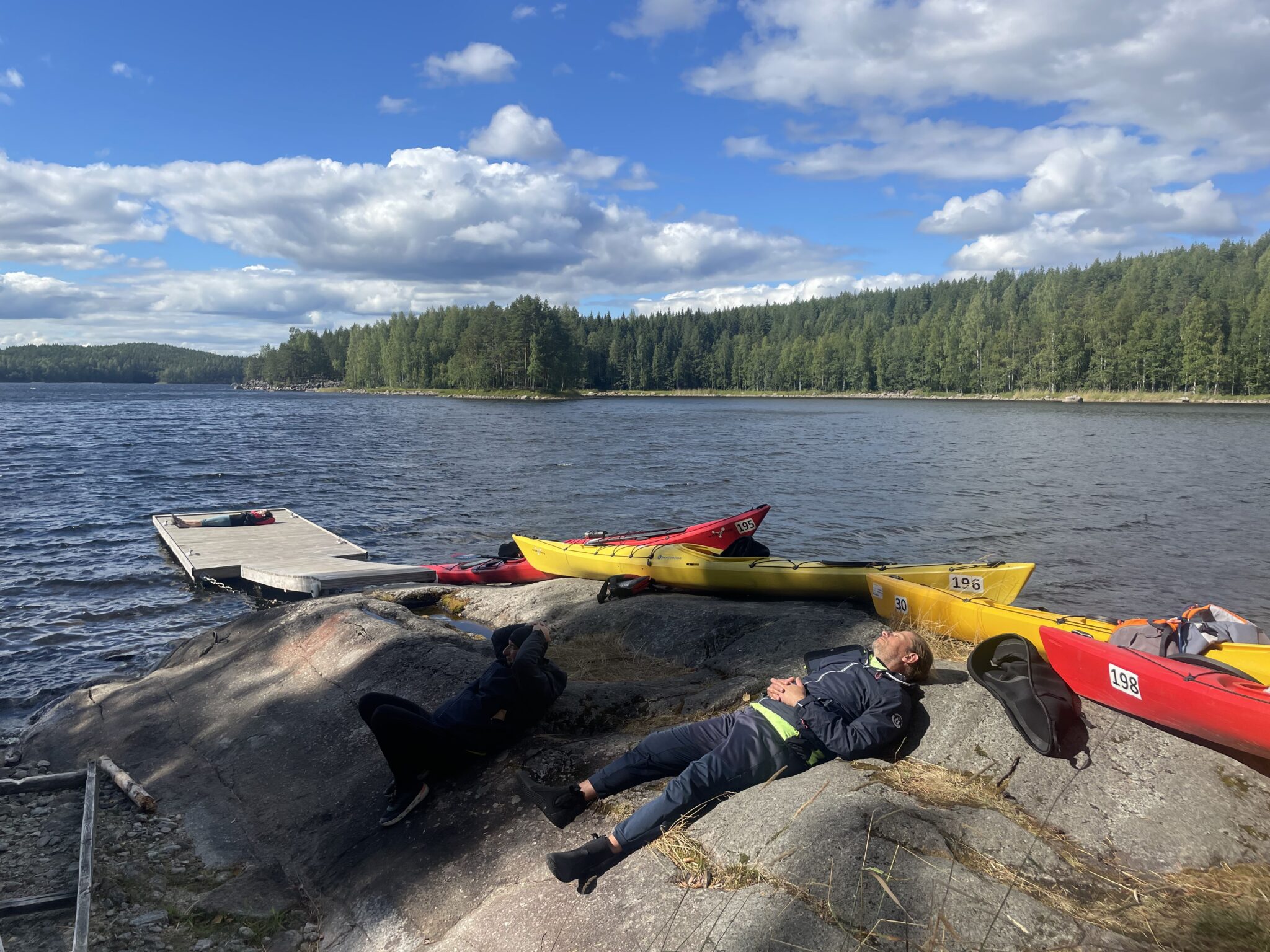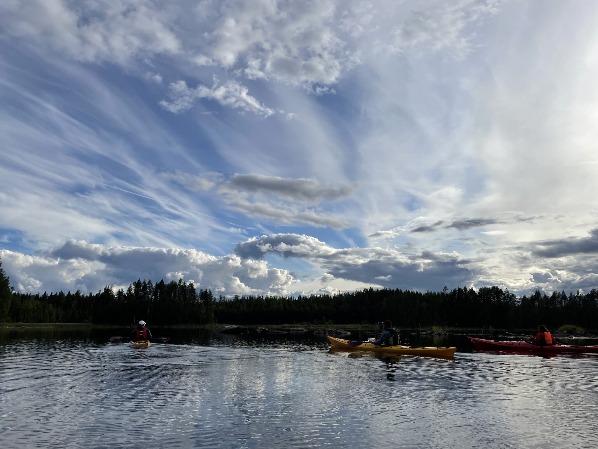 For days, we’ll roam by kayak through a maze of lakes and islands where distance and closeness merge — where endless water meets deep forest and the scent of birch smoke drifts from a freshly lit sauna.